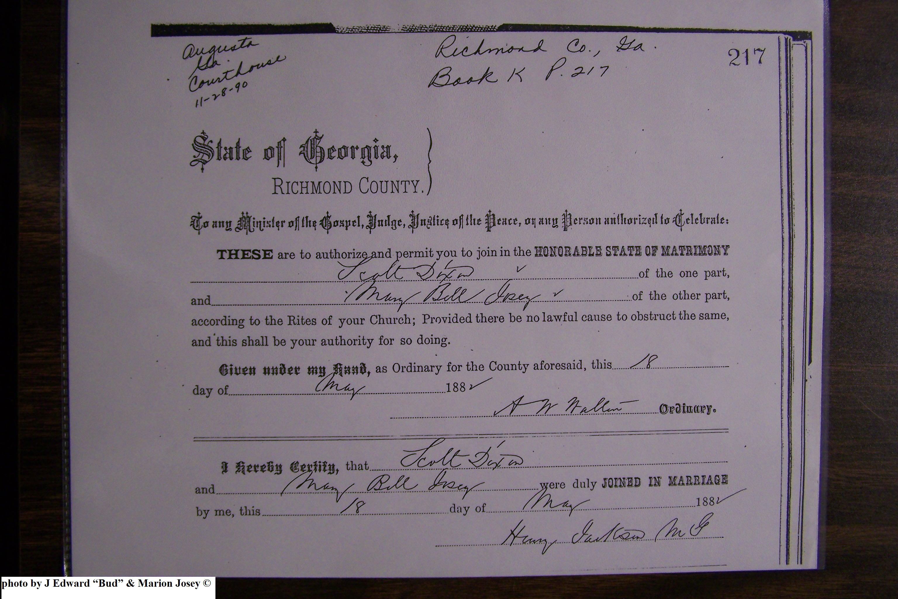 Josey Marriage Lic of Richmond Co, GA, 087.JPG