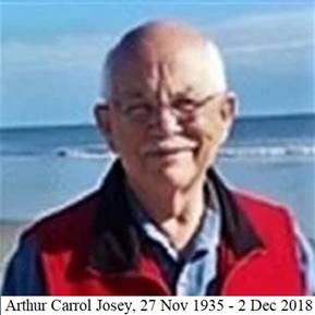 Josey COLUMBIA - Arthur Carrol Josey, died Sunday, December 2, 2018. Born in Lee County on November